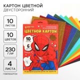 Цветной картон гофрированный, А4, 10 листов, 10 цветов, немелованный, двусторонний, в папке, 230 г/м2, «Человек-паук»