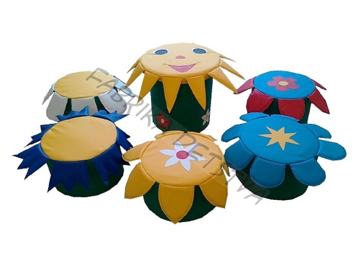 Комплектация: пуфик: D35xH25 – 5 шт. столик: D45xH39 – 1шт.