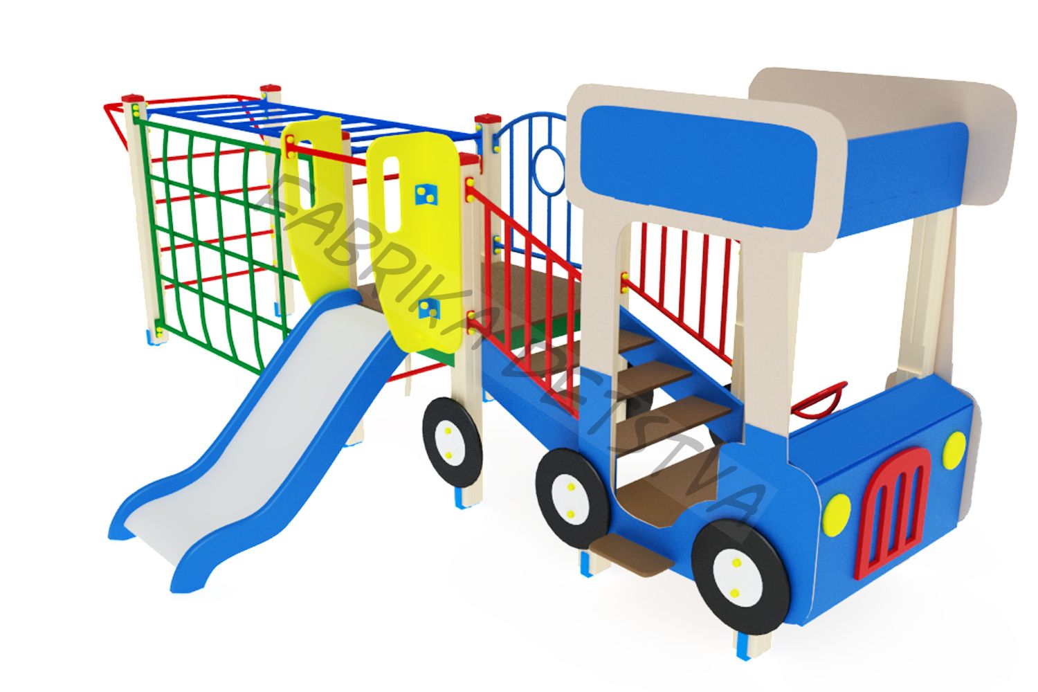Две башни выполнены из четырёх клеёных брусьев 90х90 мм высота 1500 мм; пол из ламинированной фанеры, с антискользящим покрытием 1000х1000 мм и одна выполнена из четырёх клеёных брусьев 90х90 мм высота 1500 мм; пол из ламинированной фанеры, с антискользящим покрытием 780х1000 толщиной 18 мм; башни имеют борта из влагостойкой фанеры толщиной 18 мм, борта стилизованы под грузовичок. Размер башен 1000х1000 мм и 780х1000 мм. Отметка пола от планировочной отм площадки 750 и 300 мм. |