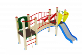Дугообразный мост | Мост состоит из металлического сварного каркаса из трубы диаметром 2 мм и полосы 40х4 мм, (металл имеет плавные радиусы и тщательную обработку швов, покрыт порошковой краской в синий цвет) и брусков из ламинированной антискользящей фанеры, размер 780х100х24 мм. Общая длина моста 1500 мм, ширина 780 мм. | 1 | шт |
