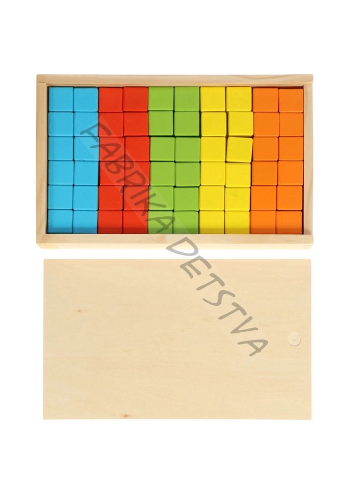 Детский набор деревянные кубики, цветные, 60 штук.