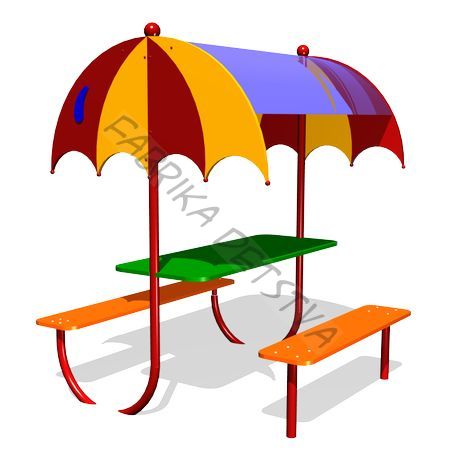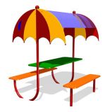 Это оборудование используется для оснащения игровых площадок детей дошкольного возраста и служит для спокойных настольных игр в тени.
