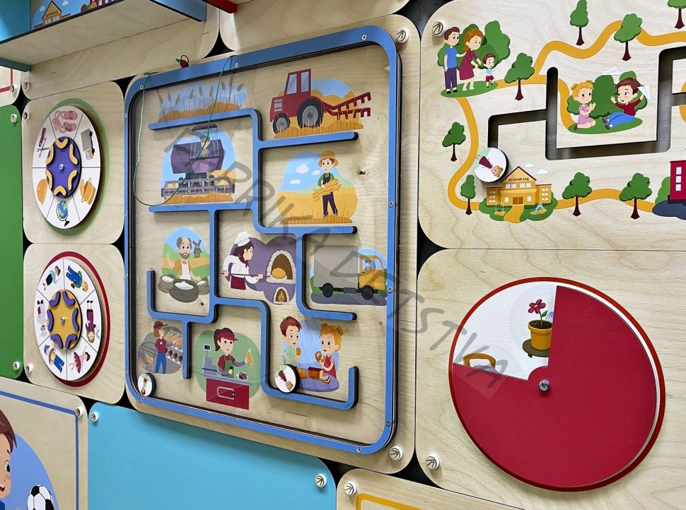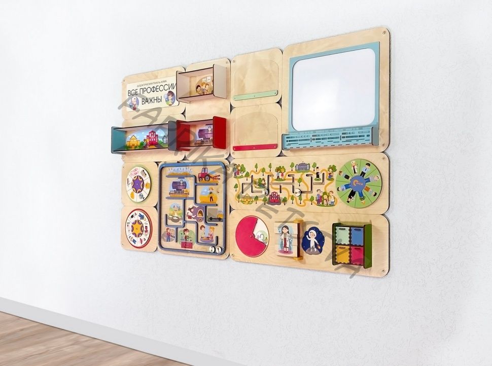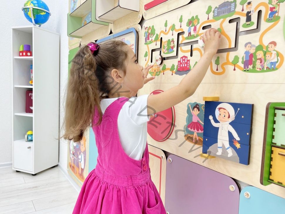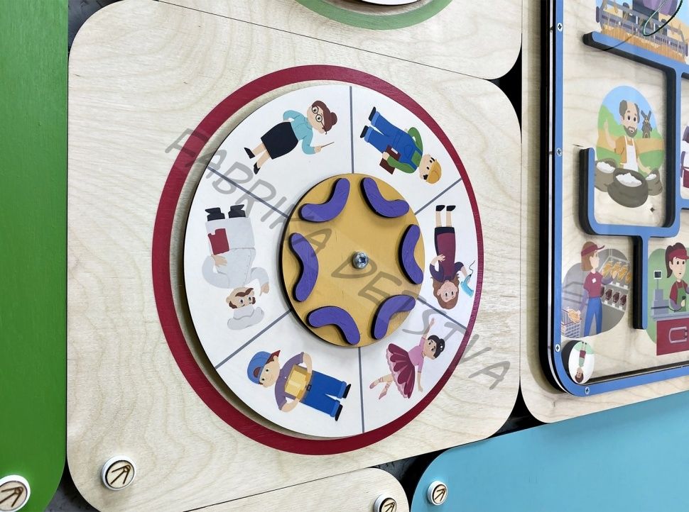 Вместе с педагогом ребята смогут пофантазировать на тему «Кем я буду, когда вырасту». Панель знакомит с разными профессиями и важными этапами жизни человека, развивает логику и мышление, тренирует мелкую моторику и цветовосприятие.