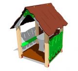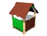 Детский игровой домик «Хижина» представляет собой стойки из клееного бруса, облицованные накладками из влагостойкой фанеры.