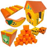 Игровой Домик-трансформер изготовлен из мягких модулей, которые крепятся между собой на липучках. Модули сделаны из поролона и винилискожи. Мягкие стенки делают домик безопасным. Он подойдет для оснащения комнат, где пребывают дети в возрасте от 1, 5 до 10 лет. Находиться в домике удобно. Его высота составляет 150 см, ребенок помещается внутри в полный рост. Дети играют в домике самостоятельно. Педагог может использовать его для проведения сюжетно-ролевых игр, различных постановок на детских утренниках. За счет яркой расцветки и качественного материала домик-трансформер украсит любое помещение.