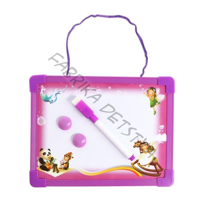 Односторонняя доска с яркой рамкой станет для юного творца отличным помощником в увлекательных занятиях рисованием. Она красочная с веселыми картинками. Доска предназначена для рисования на ней водным маркером, который входит в набор. Также в комплекте есть 2 магнитика, с помощью которых можно прикреплять к доске всё, что захотите – рисунки, картинки, обучающие материалы! Доска оснащена петлей, за которую её можно подвесить для удобства занятий. Каждый малыш талантлив, поэтому одной из важных задач родителей является выявление у ребенка задатков творческих способностей и их развитие!