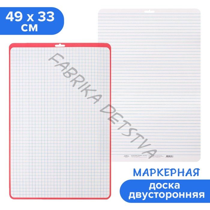 Маркерная доска выполняет сразу несколько задач: Маленький ребенок с помощью доски учится рисовать и писать, а когда станет школьником, удобно выполнять различные задания или размещать актуальную информацию, например, таблицу умножения. Благодаря двусторонности клетка/линейка, доски активно используют для обучения в логопедии, детских садах и школах. Размер: формат А3, клетка 1 х 1 см., линейка ширина 1 см. Не требует особого ухода. Главное использовать маркеры на водной основе с маркировкой для ДОСКИ. Чтобы стереть рисунок, нужна сухая тряпка или губка. Мобильность: можно размешать на любых поверхностях, а также брать собой в дорогу. Экономичность: многократность использования, служит не один год, экономия на покупке детских альбомов или тетрадей. Разные дизайны.