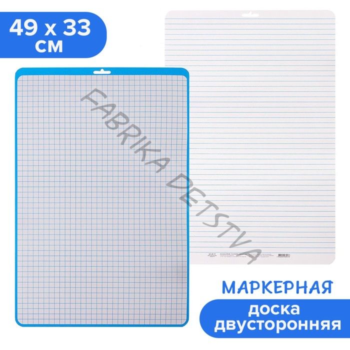 Маркерная доска выполняет сразу несколько задач: Маленький ребенок с помощью доски учится рисовать и писать, а когда станет школьником, удобно выполнять различные задания или размещать актуальную информацию, например, таблицу умножения. Благодаря двусторонности клетка/линейка, доски активно используют для обучения в логопедии, детских садах и школах. Размер: формат А3, клетка 1 х 1 см., линейка ширина 1 см. Не требует особого ухода. Главное использовать маркеры на водной основе с маркировкой для ДОСКИ. Чтобы стереть рисунок, нужна сухая тряпка или губка. Мобильность: можно размешать на любых поверхностях, а также брать собой в дорогу. Экономичность: многократность использования, служит не один год, экономия на покупке детских альбомов или тетрадей. Разные дизайны.