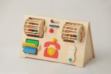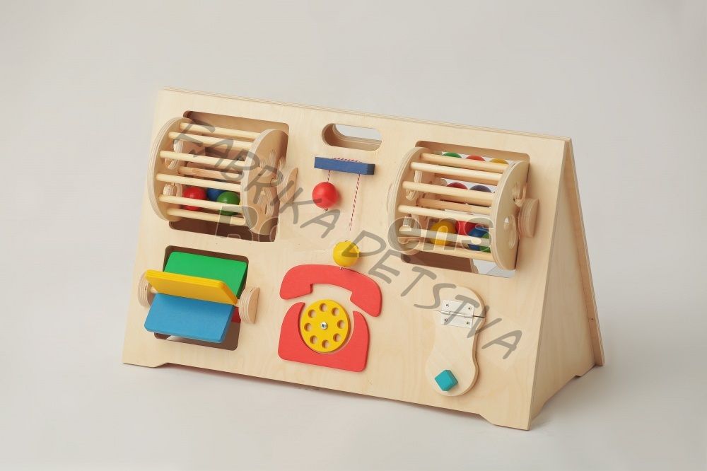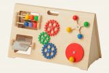 На панели размещены различные устройства и механизмы, дающие наглядное представление об элементарной механике в игровой форме. Двусторонняя тактильная панель «Елочка» отлично разрабатывает у детей осязательные навыки, помогает развить интерактивную деятельность, а так же предназначена для звуковой стимуляции. Панель является переносной, не требует стационарного закрепления