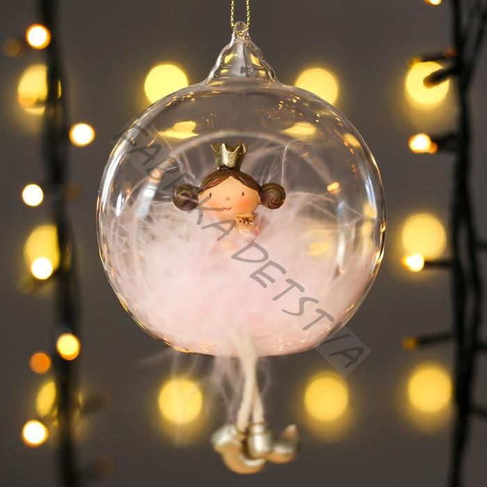 Фигурка полистоун «Ангелочек-принцесса, розовый пушок, в шарике», 9x8x10 см