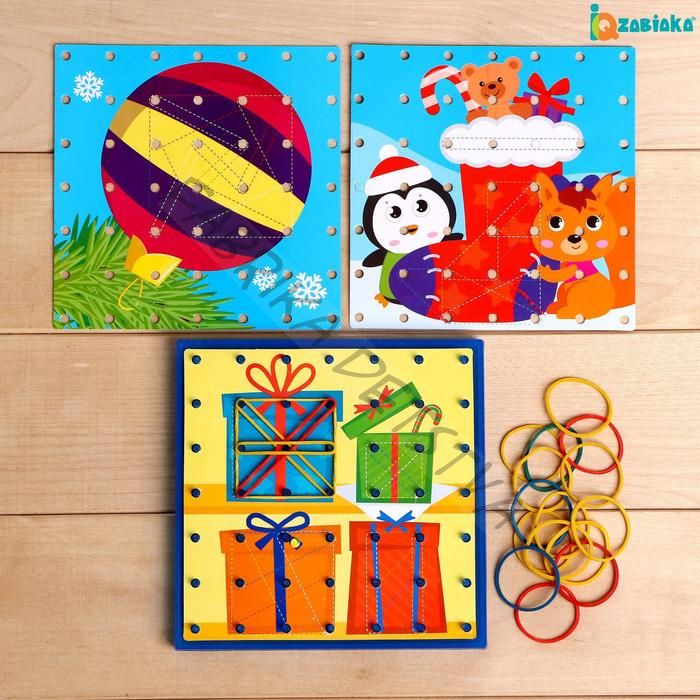 Геоборд «Новогодние задания», со сменными картинками и резиночками, МИКС, 3+