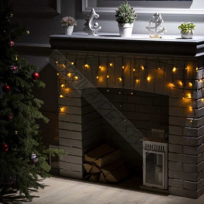 Гирлянда «Бахрома» 1.8 х 0.5 м, IP20, тёмная нить, 48 LED, свечение жёлтое, 8 режимов, 220 В