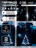 Гирлянда «Бахрома» 2.4 x 0.9 м с насадками «Ёлки», IP20, прозрачная нить, 138 LED, свечение белое, 8 режимов, 220 В
