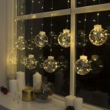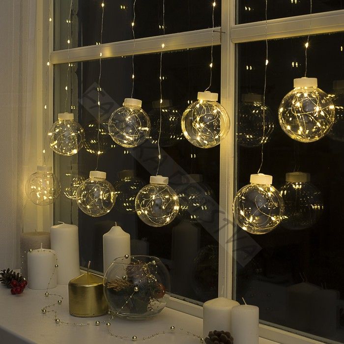 Гирлянда «Бахрома» 2.5 x 0.7 м роса с насадками «Шарики», IP20, серебристая нить, 150 LED, свечение тёплое белое, 12 В