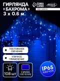 Гирлянда "Бахрома" 3 х 0.6 м, IP65, УМС, тёмная нить каучук, 108 LED, свечение синее, 220 В