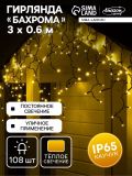 Гирлянда "Бахрома" 3 х 0.6 м, IP65, УМС, тёмная нить каучук, 108 LED, свечение тёплое белое, 220 В