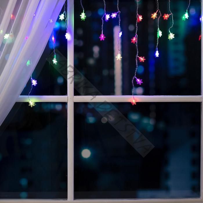 Гирлянда «Бахрома» 3 x 0.5 м с насадками «Снежинки», IP20, прозрачная нить, 80 LED, свечение мульти (RG/RB), мигание, 220 В