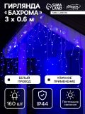 Гирлянда «Бахрома» 3 x 0.6 м, IP44, УМС, белая нить, 160 LED, свечение синее, 220 В