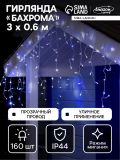Гирлянда «Бахрома» 3 x 0.6 м, IP44, УМС, прозрачная нить, 160 LED, свечение бело-синее, мигание, 220 В