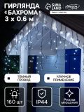Гирлянда «Бахрома» 3 x 0.6 м, IP44, УМС, тёмная нить, 160 LED, свечение белое, мерцание белым, 220 В