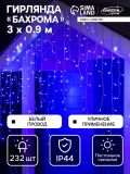 Гирлянда «Бахрома» 3 x 0.9 м, IP44, УМС, белая нить, 232 LED, свечение синее, 220 В