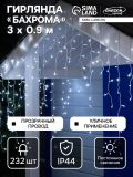 Гирлянда «Бахрома» 3 x 0.9 м, IP44, УМС, прозрачная нить, 232 LED, свечение белое, 220 В