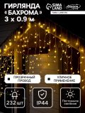 Гирлянда «Бахрома» 3 x 0.9 м, IP44, УМС, прозрачная нить, 232 LED, свечение тёплое белое, 220 В