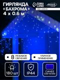 Гирлянда «Бахрома» 4 x 0.6 м, IP44, прозрачная нить, 180 LED, свечение синее, 8 режимов, 220 В