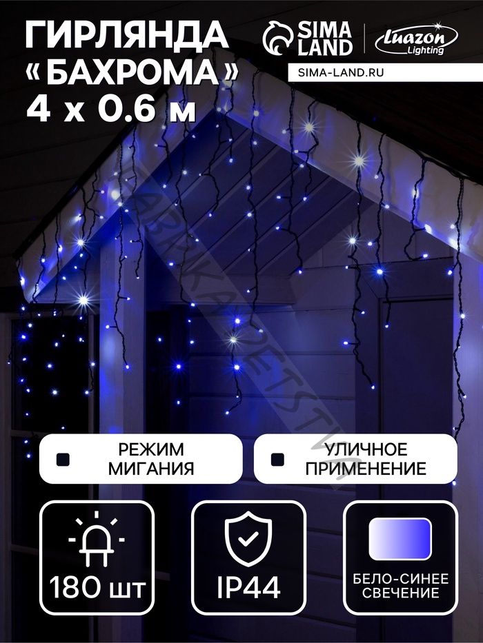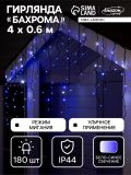 Гирлянда «Бахрома» 4 x 0.6 м, IP44, тёмная нить, 180 LED, свечение бело-синее, мигание, 220 В