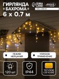 Гирлянда «Бахрома» 6 x 0.7 м, IP44, УМС, белая нить, 120 LED, свечение тёплое белое, мерцание, 220 В