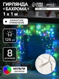 Гирлянда «Бахрома-арка» 1 x 1 м, IP20, прозрачная нить, 126 LED, свечение мульти, 8 режимов, 220 В
