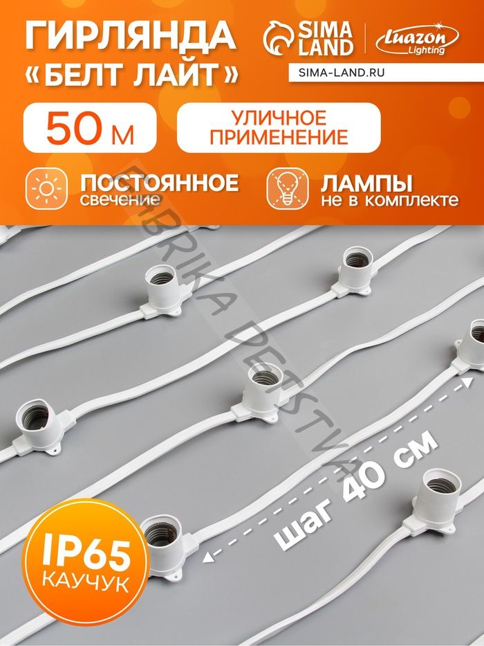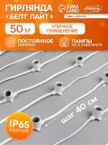 Гирлянда «Белт-лайт» 50 м, IP65, 2W, белая каучуковая нить, шаг 40 см, Е27 (без ламп), 220 В