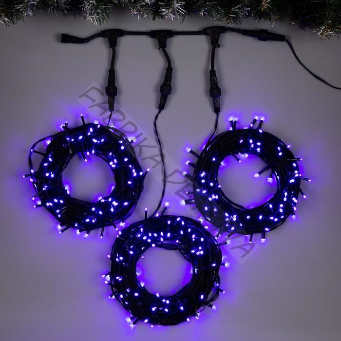 Гирлянда «Клип-лайт» 3 нити по 20 м, IP44, УМС, тёмная нить, 399 LED, свечение фиолетовое, 8 режимов, 24 В