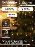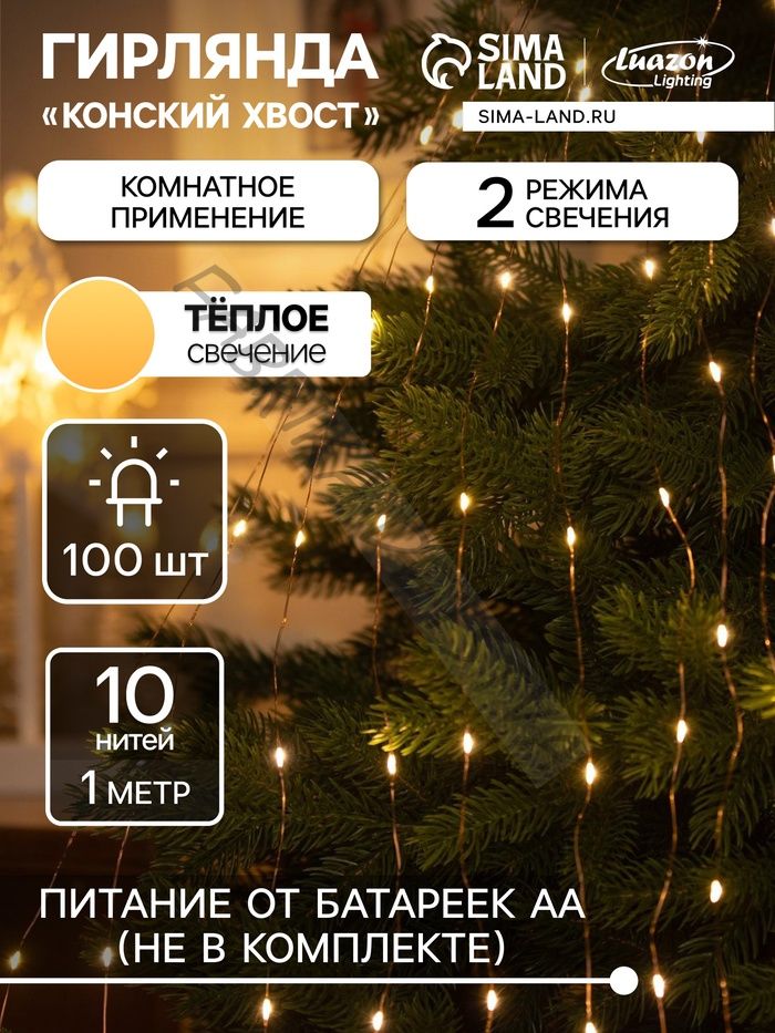 Гирлянда «Конский хвост» 10 нитей по 1 м, IP20, медная нить, 100 LED, 2 режима, батарейки AAх3 (нет в комплекте), свечение тёплое белое