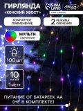 Гирлянда «Конский хвост» 10 нитей по 1 м, IP20, серебристая нить, 100 LED, 2 режима, батарейки AAх3 (нет в комплекте), свечение мульти