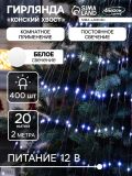 Гирлянда «Конский хвост» 20 нитей по 2 м, нить медная, 400 LED, 12 В, блок питания в комплекте, фиксинг, свечение белое
