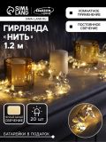 Гирлянда «Мишура» 1.2 м роса с насадками «Кристаллы», IP20, серебристая нить, 20 LED, батарейки CR2032х2 (в комплекте), свечение тёплое белое