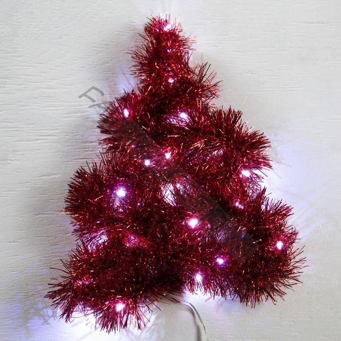 Гирлянда «Мишура» 1 м роса, IP20, красная нить, 22 LED, 6 слоёв, d=7 см, батарейки CR2032х2 (в комплекте), свечение белое