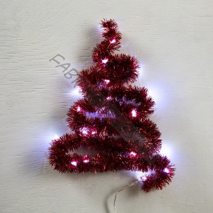 Гирлянда «Мишура» 1 м роса, IP20, красная нить, 22 LED, 8 слоёв, d=3 см, батарейки CR2032х2 (в комплекте), свечение белое