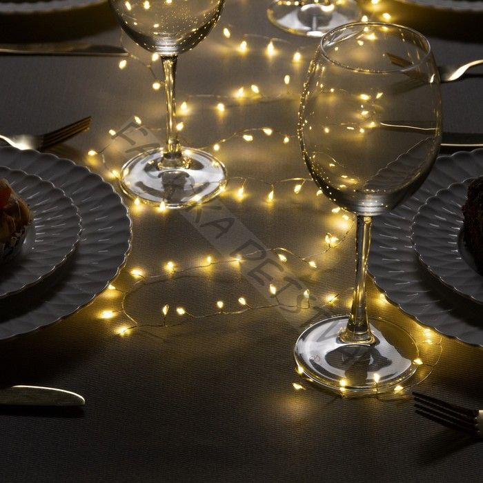 Гирлянда «Мишура» 2 м роса, IP20, серебристая нить, 100 LED, свечение тёплое белое, USB