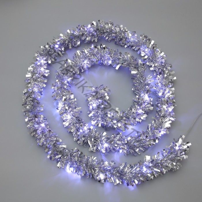 Гирлянда «Мишура» 2 м роса, IP20, серебристая нить, 44 LED, 6 слоёв, d=5 см, свечение белое, ААх2