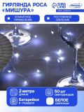Гирлянда «Мишура» 2 м роса, IP20, серебристая нить, 50 LED, батарейки CR2032х2 (в комплекте), свечение белое