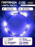 Гирлянда «Нить» 1 м роса. IP20, нить серебристая, 10 LED, 4.6 В, AG13x3 (в комплекте), 3 режима, свечение синее