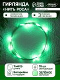 Гирлянда «Нить» 1 м роса. IP20, нить серебристая, 10 LED, 4.6 В, AG13x3 (в комплекте), 3 режима, свечение зелёное