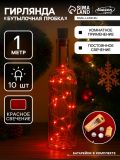 Гирлянда «Нить» 1 м роса с пробкой, IP20, серебристая нить, 10 LED, батарейки LR44х3 (в комплекте), свечение красное