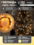 Гирлянда «Нить» 10 м роса, IP20, медная нить, 100 LED, свечение тёплое белое, 12 В