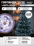 Гирлянда «Нить» 100 м роса, IP44, серебристая нить, 1000 LED, свечение белое, 18 В