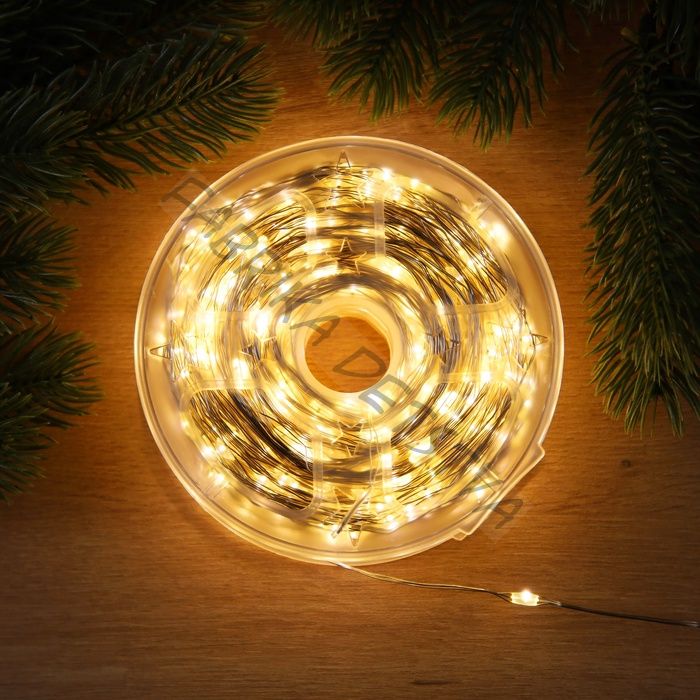 Гирлянда «Нить» 100 м роса, IP44, серебристая нить, 1000 LED, свечение тёплое белое, 18 В