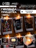 Гирлянда «Нить» 2 м роса с насадками «Прищепки-цветы», IP20, серебристая нить, 20 LED, батарейки ААх2 (нет в комплекте), свечение тёплое белое