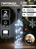 Гирлянда «Нить» 2 м роса с пробкой, IP20, серебристая нить, 20 LED, батарейки LR44х3 (в комплекте), свечение белое